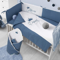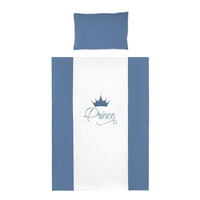 2-részes ágyneműgarnitúra Belisima Royal Baby babák számára. Párnahuzatot 40x60 cm és takaró huzatot 90x120 cm tartalmaz. Puha minőségi anyagból készült. Összetétel: 100% pamut. Ezek a termékek biztonságosak, mivel: a természetes pamut nem okoz bőrirritációt, mivel nem tartalmaz formaldehidet és egyéb, csecsemőkre káros anyagokat. Nem veszítenek színeik élénkségéből és nem színezi el a többi ruhát. Kellemes mintázatúak és színei nyugtató hatásúak. Nem tartalmaznak gombokat, sem műanyag illetve acél darabkákat, melyek veszélyesek lennének gyermeke számára. A párna és a paplan töltete antialergén anyagból készült ami azt jelenti, hogy nem terjeszt mikroorganizmusokat és penészt.