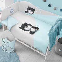 2-részes ágyneműgarnitúra Belisima LILO & LU babák számára. Párnahuzatot 40x60 cm és takaró huzatot 100x135 cm tartalmaz. Puha minőségi anyagból készült. Összetétel: 100% pamut. Ezek a termékek biztonságosak, mivel: a természetes pamut nem okoz bőrirritációt, mivel nem tartalmaz formaldehidet és egyéb,  csecsemőkre káros anyagokat. Nem veszítenek színeik élénkségéből és nem színezi el a többi ruhát. Kellemes mintázatúak és színei nyugtató hatásúak. Nem tartalmaznak gombokat, sem műanyag illetve acél darabkákat, melyek veszélyesek lennének gyermeke számára. A párna és a paplan töltete antialergén anyagból készült ami azt jelenti, hogy nem terjeszt  mikroorganizmusokat és penészt.