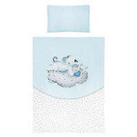 2-részes ágyneműgarnitúra Belisima LOVE babák számára. Párnahuzatot 40x60 cm és takaró huzatot 90x120 cm tartalmaz. Puha minőségi anyagból készült. Összetétel: 100% pamut. Ezek a termékek biztonságosak, mivel: a természetes pamut nem okoz bőrirritációt, mivel nem tartalmaz formaldehidet és egyéb,  csecsemőkre káros anyagokat. Nem veszítenek színeik élénkségéből és nem színezi el a többi ruhát. Kellemes mintázatúak és színei nyugtató hatásúak. Nem tartalmaznak gombokat, sem műanyag illetve acél darabkákat, melyek veszélyesek lennének gyermeke számára. A párna és a paplan töltete antialergén anyagból készült ami azt jelenti, hogy nem terjeszt  mikroorganizmusokat és penészt.