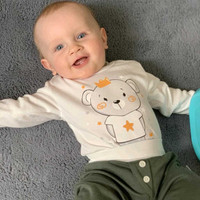 Modern és stílusos baba 2-részes együttes New Baby Funny. Az együttes szabadidőnadrágot és bodyt tartalmaz. A body aranyos képpel van díszítve. Vállnál és az ülepénél patentos, ami megkönnyíti a baba öltöztetését és pelenkázását. A szabadidőnadrág széles szegéllyel és széles rugalmas derékpánttal rendelkezik, amely nem nyomja a baba hasát. Nemcsak a babakocsiba, az autóülésbe, hanem sétálás közben és kényelmes otthoni viselésre is használható. A divatos dizájnak köszönhetően a kollekcióba a baba nagyon aranyos lesz. Anyaga: body: 100% pamut.