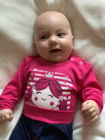 Modern és stílusos baba 2-részes együttes New Baby Funny. Az együttes szabadidőnadrágot és bodyt tartalmaz. A body aranyos képpel van díszítve. Vállnál és az ülepénél patentos, ami megkönnyíti a baba öltöztetését és pelenkázását. A szabadidőnadrág széles szegéllyel és széles rugalmas derékpánttal rendelkezik, amely nem nyomja a baba hasát. Nemcsak a babakocsiba, az autóülésbe, hanem sétálás közben és kényelmes otthoni viselésre is használható. A divatos dizájnak köszönhetően a kollekcióba a baba nagyon aranyos lesz. Anyaga: body: 100% pamut.
