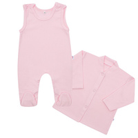 Bájos New Baby Sweetie pamut baba együttes. Az együttes rugdalózót és kabátot tartalmaz. Puha és lágy anyagának köszönhetően születéstől kezdve alkalmas. A rugdalózó egyszínű. A vállán és az ülepén patentos, ami megkönnyíti a baba öltöztetését és pelenkázását. Az egyszínű kabát teljes hosszában patentos. Nem mindennapi, új dizájnú együttes magával ragadó csíkos szövetmintával és azsúrral. A precíz és minőségi varrással készült együttesben a baba mindig nagyon kellemesen fogja érezni magát. Összetétel: 100% pamut.