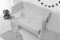 3-részes ágyneműgarnitúra Belisima Amigo babák szám. Párnahuzatot 40x60 cm, takaró huzato 90x120 cm és rácsvédőt 180 cm tartalmaz. Puha minőségi anyagból készült. Összetétel: 100% pamut. Ezek a termékek biztonságosak, mivel: a természetes pamut nem okoz bőrirritációt, mivel nem tartalmaz formaldehidet és egyéb, csecsemőkre káros anyagokat. Nem veszítenek színeik élénkségéből és nem színezi el a többi ruhát. Kellemes mintázatúak és színei nyugtató hatásúak. Nem tartalmaznak gombokat, sem műanyag illetve acél darabkákat, melyek veszélyesek lennének gyermeke számára. A párna és a paplan töltete antialergén anyagból készült ami azt jelenti, hogy nem terjeszt mikroorganizmusokat és penészt.
