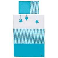 3-részes ágyneműgarnitúra Belisima. Párnahuzatot 40x60 cm, takaró huzatot 90x120 cm és rácsvédőt 31x175 cm tartalmaz. Puha minőségi anyagból készült, cik cak mintával. Összetétel: 100% pamut. Ezek a termékek biztonságosak, mivel: a természetes pamut nem okoz bőrirritációt, mivel nem tartalmaz formaldehidet és egyéb, csecsemőkre káros anyagokat. Nem veszítenek színeik élénkségéből és nem színezi el a többi ruhát. Kellemes mintázatúak és színei nyugtató hatásúak. Nem tartalmaznak gombokat, sem műanyag illetve acél darabkákat, melyek veszélyesek lennének gyermeke számára. A párna és a paplan töltete antialergén anyagból készült ami azt jelenti, hogy nem terjeszt mikroorganizmusokat és penészt.