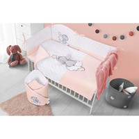 3-részes ágyneműgarnitúra Belisima Cute Mouse babák szám. Párnahuzatot 40x60 cm, takaró huzato 90x120 cm és rácsvédőt 180 cm tartalmaz. Puha minőségi anyagból készült. Összetétel: 100% pamut. Ezek a termékek biztonságosak, mivel: a természetes pamut nem okoz bőrirritációt, mivel nem tartalmaz formaldehidet és egyéb, csecsemőkre káros anyagokat. Nem veszítenek színeik élénkségéből és nem színezi el a többi ruhát. Kellemes mintázatúak és színei nyugtató hatásúak. Nem tartalmaznak gombokat, sem műanyag illetve acél darabkákat, melyek veszélyesek lennének gyermeke számára. A párna és a paplan töltete antialergén anyagból készült ami azt jelenti, hogy nem terjeszt mikroorganizmusokat és penészt.