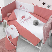 3-részes ágyneműgarnitúra Belisima Royal Baby babák szám. Párnahuzatot 40x60 cm, takaró huzatot 90x120 cm és rácsvédőt 180 cm tartalmaz. Puha minőségi anyagból készült. Összetétel: 100% pamut. Ezek a termékek biztonságosak, mivel: a természetes pamut nem okoz bőrirritációt, mivel nem tartalmaz formaldehidet és egyéb, csecsemőkre káros anyagokat. Nem veszítenek színeik élénkségéből és nem színezi el a többi ruhát. Kellemes mintázatúak és színei nyugtató hatásúak. Nem tartalmaznak gombokat, sem műanyag illetve acél darabkákat, melyek veszélyesek lennének gyermeke számára. A párna és a paplan töltete antialergén anyagból készült ami azt jelenti, hogy nem terjeszt mikroorganizmusokat és penészt.