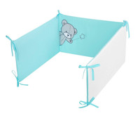 3-részes ágyneműgarnitúra Belisima Teddy Bear babák szám. Párnahuzatot 40x60 cm, takaró huzato 100x135 cm és rácsvédőt 180 cm tartalmaz. Puha minőségi anyagból készült. Összetétel: 100% pamut. Ezek a termékek biztonságosak, mivel: a természetes pamut nem okoz bőrirritációt, mivel nem tartalmaz formaldehidet és egyéb, csecsemőkre káros anyagokat. Nem veszítenek színeik élénkségéből és nem színezi el a többi ruhát. Kellemes mintázatúak és színei nyugtató hatásúak. Nem tartalmaznak gombokat, sem műanyag illetve acél darabkákat, melyek veszélyesek lennének gyermeke számára. A párna és a paplan töltete antialergén anyagból készült ami azt jelenti, hogy nem terjeszt mikroorganizmusokat és penészt.