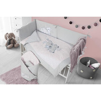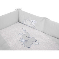 5-részes ágyneműgarnitúra Belisima Friends babák számára. Tartalmaz: párnahuzatot, paplanhuzatot, rácsvédőt, párnát és paplan. Párnahuzatot 40x60 cm, takaró huzatot 90x120 cm és rácsvédőt 180 cm tartalmaz. Puha minőségi anyagból készült. Összetétel: 100% pamut. Ezek a termékek biztonságosak, mivel: a természetes pamut nem okoz bőrirritációt, mivel nem tartalmaz formaldehidet és egyéb, csecsemőkre káros anyagokat. Nem veszítenek színeik élénkségéből és nem színezi el a többi ruhát. Kellemes mintázatúak és színei nyugtató hatásúak. Az ágyneműhuzaton használt cipzár "biztonságos cipzár" lengővégek nélkül, amit a gyermek nem vehet le és nem nyelhet le! Nem tartalmaznak gombokat, sem műanyag illetve acél darabkákat, melyek veszélyesek lennének gyermeke számára. A párna és a paplan töltete antialergén anyagból készült ami azt jelenti, hogy nem terjeszt mikroorganizmusokat és penészt.