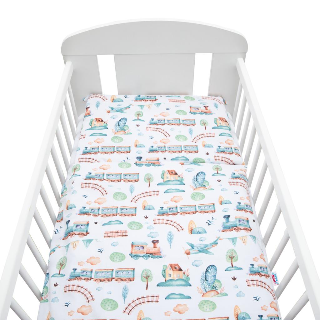 2-részes ágyneműgarnitúra New Baby. Párnahuzatot 40x60 cm és takaró huzatot 135x100 cm tartalmaz. Puha minőségi anyagból készült. Összetétel: 100% pamut. Ezek a termékek biztonságosak, mivel: a természetes pamut nem okoz bőrirritációt, mivel nem tartalmaz formaldehidet és egyéb, csecsemőkre káros anyagokat. Nem veszítenek színeik élénkségéből és nem színezi el a többi ruhát. Kellemes mintázatúak és színei nyugtató hatásúak. Nem tartalmaznak gombokat, sem műanyag illetve acél darabkákat, melyek veszélyesek lennének gyermeke számára. A párna és a paplan töltete antialergén anyagból készült ami azt jelenti, hogy nem terjeszt mikroorganizmusokat és penészt.