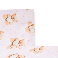 Kétrészes ágyneműgarnitúra New Baby Love Teddy Bear. Szép motívummal díszitve. Párnahuzatot 40x60 cm és takaró huzatot 120x90 cm tartalmaz. Anyaga: 100% pamut.