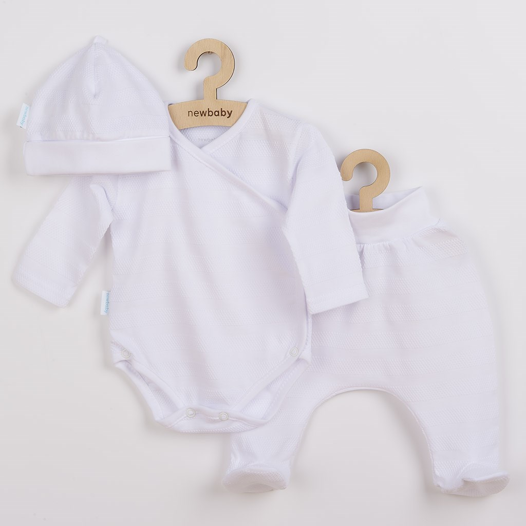 Bájos 3 részes együttes babáknak New Baby I AM. Az együttes nagyon kellemes, puha és kiváló minőségű, csecsemők számára alkalmas anyagból készült, és nem csak újszülött osztályra alkalmas.Tartalma: teljes hosszában patentos, hosszú ujjú body, rugdalózó nadrág , sapka. A body oldalán teljes hosszában és az ülepén patentos. A rugdalózó nadrág derekán szélesebb, rugalmas szegély, amely nem nyomja a baba hasát. A szélesebb szegélyű sapka jól illeszkedik a baba fejére, és nem csúszik le. Nagyon praktikus, és nem nyomja a baba fejét. Egyedi, új dizájnú együttes magával ragadó anyagmintával. A baba igényeit szem előtt tartva készült, ajándéknak is alkalmas. Az együttest praktikus ökodobozban szállítjuk. Összetétel: 100% pamut.