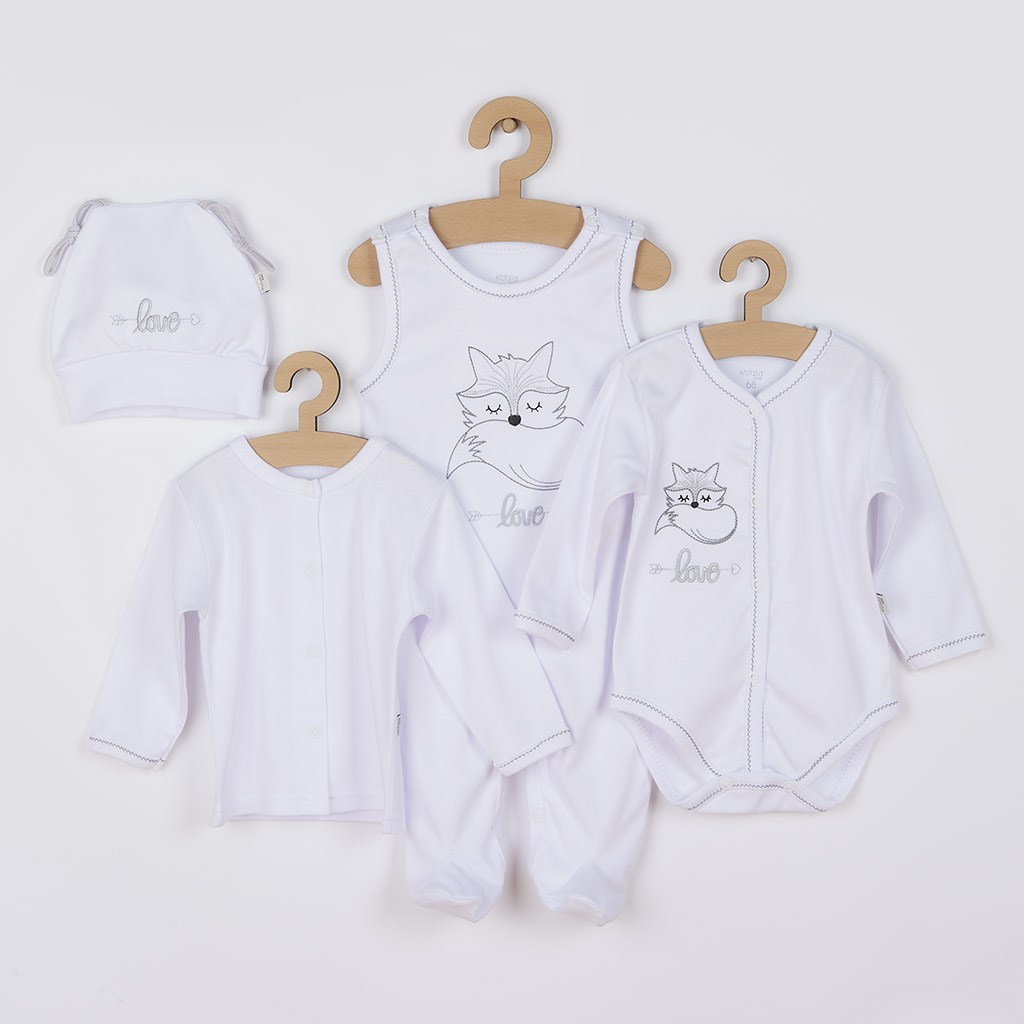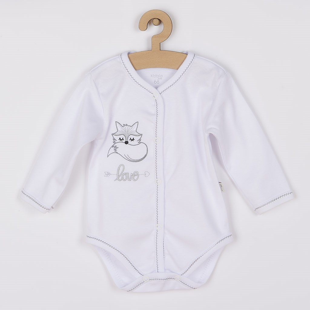 Varázslatos baba 4-részes együttes Koala Fox Love babák számára. Az együttes nagyon jó minőségű anyagból készült. Alkalmas babák számára nem csak a kórházban. Hosszú ujjú bodyt, rugdalózót, kabátkát és sapkát tartalmaz. A body teljes hosszában patentos, aranyos róka képpel és felirattal love díszítve. A rugdalózó vállnál és az ülepénél patentos, ami megkönnyíti a baba öltöztetését és pelenkázását. Aranyos róka képpel és felirattal love díszítve. A kabátka egyszínű teljes hosszában patentos. A sapka felirattal love díszítve. Széles rugalmas szegéllyel rendelkezik, amely nem nyomja a baba fejét. Alakjának köszönhetően a fülek is védve maradnak. A kollekció nagyon kellemes, puha és minőségi anyagból készült, ami kivételes és fontos a baba elégedettségéhez. Az együttes praktikus Eko dobozban van, ezért ez egy kellemes ajándék. Anyag: 100% pamut.