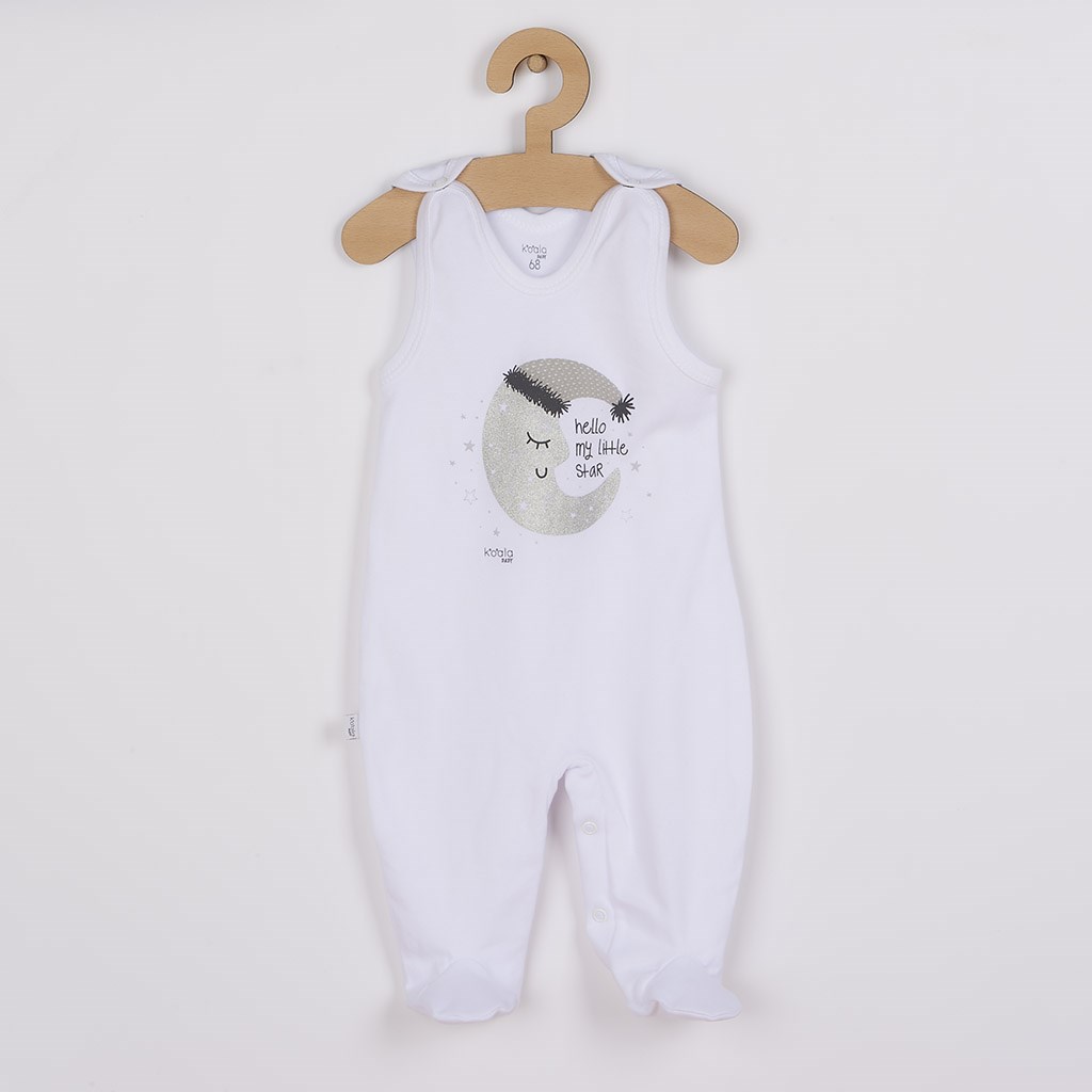 Varázslatos baba 4-részes együttes Koala Moon babák számára. Az együttes nagyon jó minőségű kellemes és puha anyagból készült. Hosszú ujjú bodyt, rugdalózót, kabátkát és sapkát tartalmaz. A body teljes hosszában patentos, aranyos képpel és felirattal díszítve. A rugdalózó vállnál és az ülepénél patentos, ami megkönnyíti a baba öltöztetését és pelenkázását. Aranyos képpel és felirattal díszítve. A kabátka egyszínű teljes hosszában patentos. A sapka széles rugalmas szegéllyel rendelkezik, amely nem nyomja a baba fejét. Alakjának köszönhetően a fülek is védve maradnak. A kollekció nagyon kellemes, puha és minőségi anyagból készült, ami kivételes és fontos a baba elégedettségéhez. Anyag: 100% pamut.