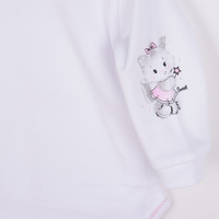 Gyönyörű pamut baba 4-részes együttes New Baby. Az együttes megkötős sapkát, hosszú ujjú és az oldalán patentos bodyt, rugdalózót és kesztyűt tartalmaz. A sapka, body és a rugdalózó, vidám képpel van díszítve. A nyomtatáshoz használt színek minősítettek és alkalmasak a gyermekek számára. Az együttes kellemes és minőségi anyagból készült, amibe a baba kényelmesen fogja érezni magát. A body patentos, ami megkönnyíti a baba öltöztetését és pelekázását. A rugdalózó vállnál és az üllepénél patentos. Anyaga: 100% pamut. Méretek: rugdalózó - mellbősége kb 45 cm, hossza válltól számítva kb 47 cm, szárhossz kb 16 cm, body - mellbősége kb 42 cm, hossza válltól számítva kb 32 cm, ujjhossza kb 18 cm. Kesztyű kb 8 cm. A sapka átmérője kb 36 cm.