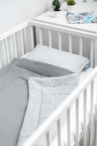 A kiságynemű szett egyik oldalán a legmagasabb minőségű muszlin, a másikon pamutfonal kombinációja. Ez a kombináció egy elegáns szettet eredményez, amely egyesíti az előkelőséget, a minőséget és a praktikumot. A szett egyaránt alkalmas a meleg nyári napokra és a hidegebb télre. Egy kétoldalas lapos párnából és egy antiallergén töltettel ellátott paplanból áll. A méreteket úgy választottuk meg, hogy tökéletesen megfeleljen kiságyban, hordozóágyban vagy bölcsőben, vagy akár "kedvenc takaróvá" váljon a babakocsiban való használathoz. Skandináv stílusával a készlet bármelyik babaszobába illik.