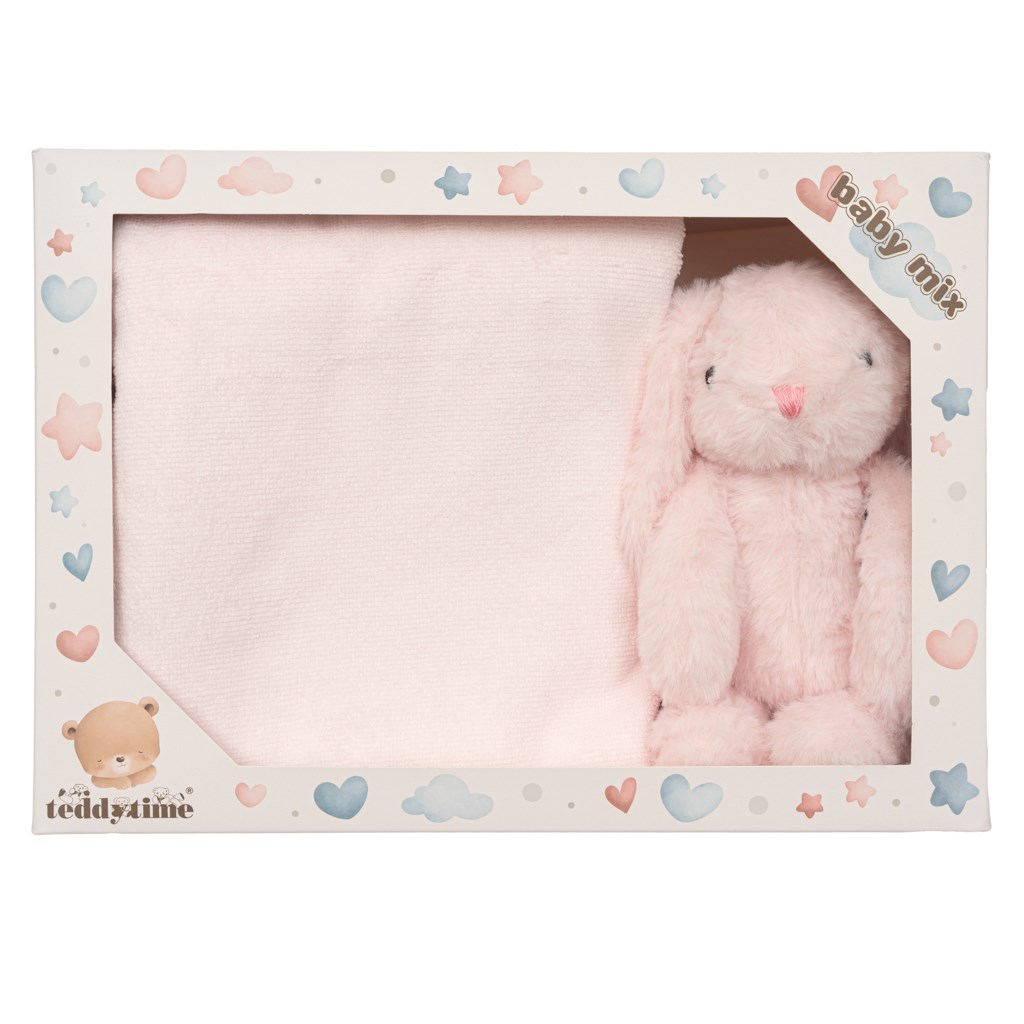 Ajándékszett Baby Mix – plüss nyuszi és köntös karton díszdobozban