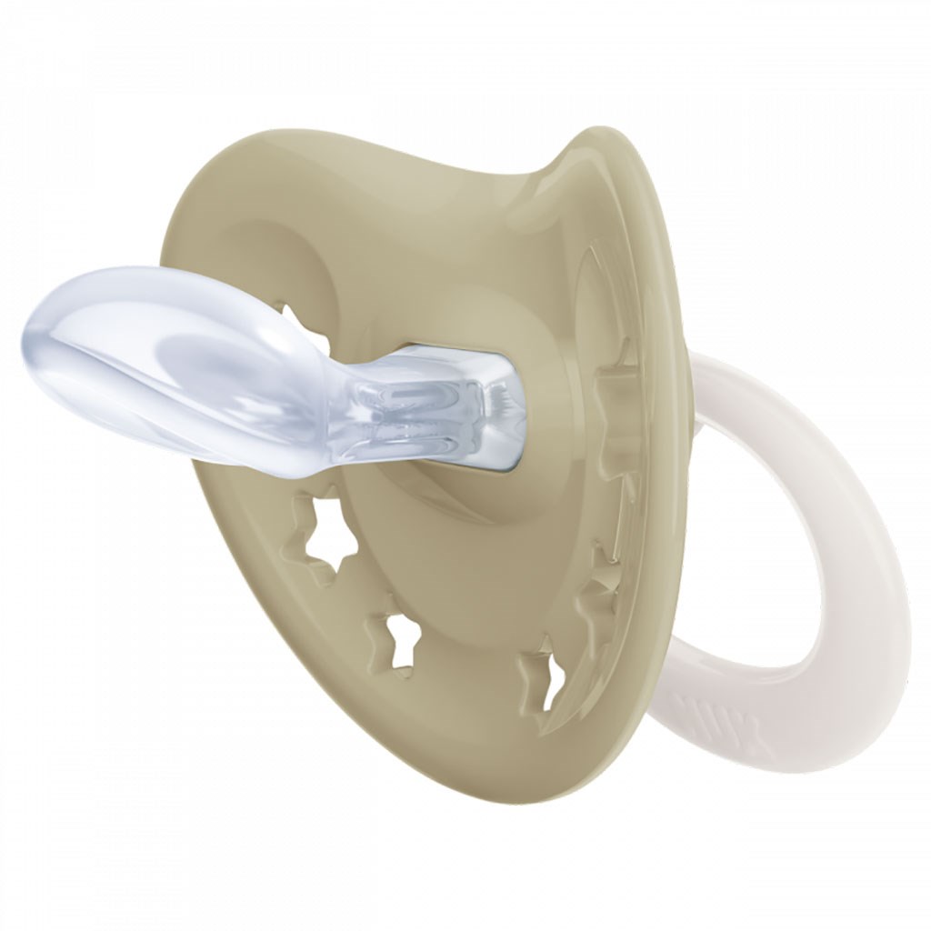 Baba cumi NUK Signature 6-18 hónapos babák számára. A cumi szimmetrikus, amely tekintettel van a szájpadlás, a fogak és az íny természetes fejlődésére. Nagyon minőségi műanyag és szilikonból készült. Szagtalan és könnyen tisztítható. Nem tartalmaz BPA-t. Minden NUK cumi rendszeresen tesztelve és ellenőrizve van a független intézetekkel.
