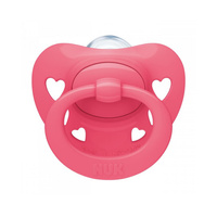 Baba cumi NUK Signature 6-18 hónapos babák számára. A cumi szimmetrikus, amely tekintettel van a szájpadlás, a fogak és az íny természetes fejlődésére. Nagyon minőségi műanyag és szilikonból készült. Szagtalan és könnyen tisztítható. Nem tartalmaz BPA-t. Minden NUK cumi rendszeresen tesztelve és ellenőrizve van a független intézetekkel.