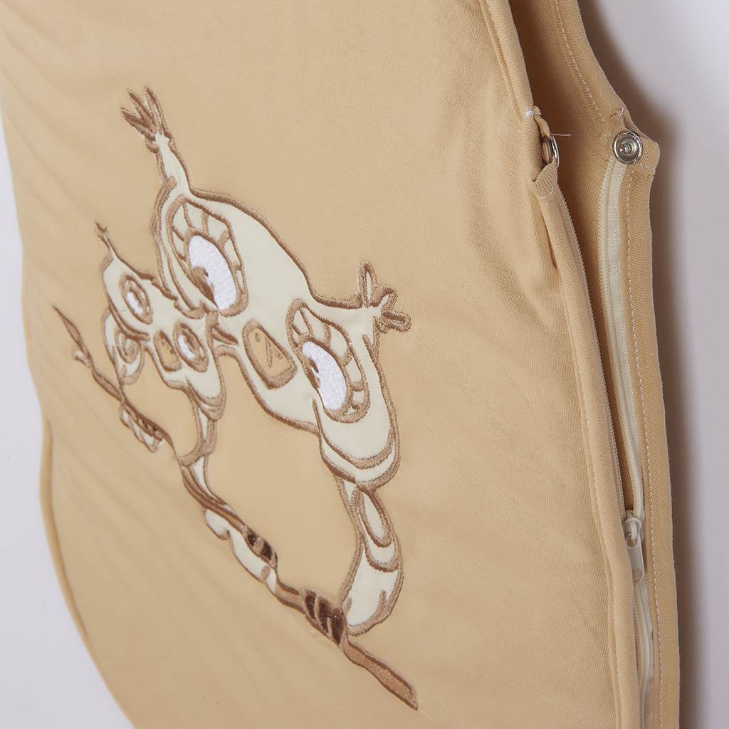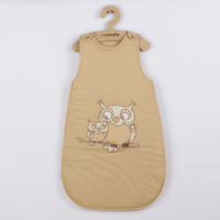 Baba hálózsák New Baby Baglyócska. Hímzet baglyócska képpel díszítve. Töltete hipoallergén rost. Vállnál patentos, oldalán cipzáros. Mellkas körüli átmérő cca 70 cm, hossz a válltól cca 86 cm. Összetétel: 100% pamut, töltete 100% poliesztér.