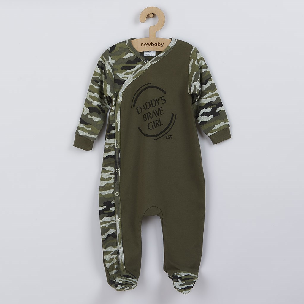 Varázslatos pamut baba kezeslábas New Baby Army. A kezeslábas terepmintás és felírattal DADDY´S BRAVE GIRL díszítve. Teljes hosszában és az ülepénél patentos, ami megkönnyíti a baba öltöztetését és pelenkázását. A kezeslábas nagyon fontos ruhadarab egy kisbaba ruhatárában, mivel a kezeslábasnak köszönhetően bármilyen mozdulatnál a kisbaba háta takarva van. Nagyon kellemes és kiváló minőségű anyagból készült, amely ideális a kisbabák számára. A New Baby számára a vevői elégedettség nagyon fontos, ezért kínáljuk Önnek az új, kiváló minőségű Army kollekciót. Anyaga: 100% pamut.