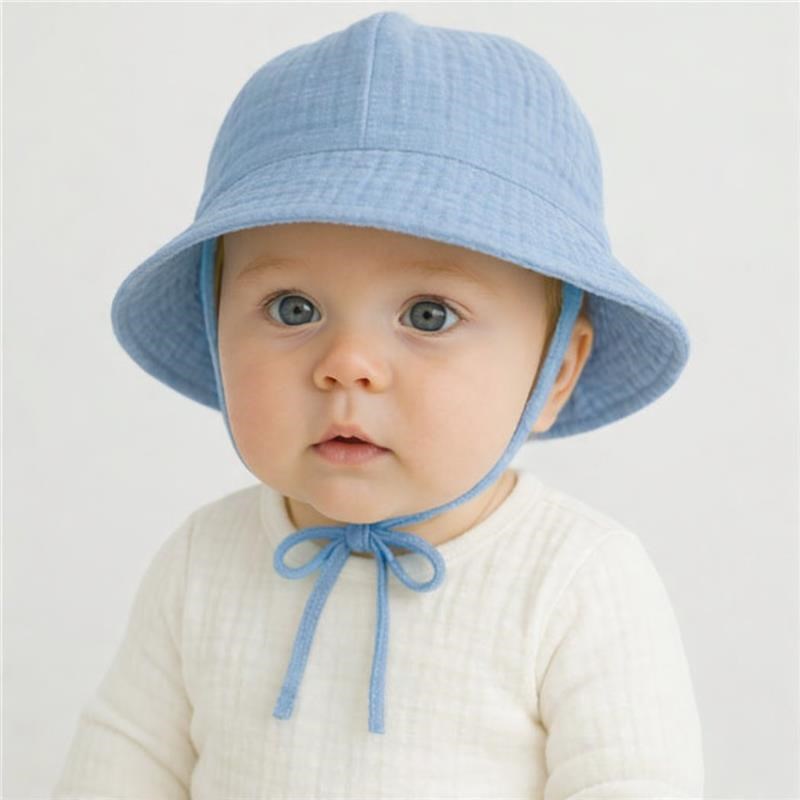 Gyönyörű és praktikus muszlin babakalap New Baby . A kalap csecsemőknek és kisgyermekeknek készült, akiknek védelemre van szükségük a napfénytől. A kalap megkötős. A bekötés kényelmes, így nem kell aggódni, hogy a sapka lecsúszik vagy leesik. A baba aranyosan fog kinézni, miközben védve lesz a napsugárzástól. A muszlin finomszövésű pamut anyag. A muszlin általában szoros szövésű fehérítetlen vagy fehér anyag, amelyet pamut gyöngyfonálból készítenek. Gyakran használják ruhák vagy függönyök készítésére. A muszlin jól levegőzik, ezért jó ruhaalapanyag a száraz, meleg éghajlatú területeken. Anyaga: 100% pamut. OEKO-TEX STANDARD 100.
