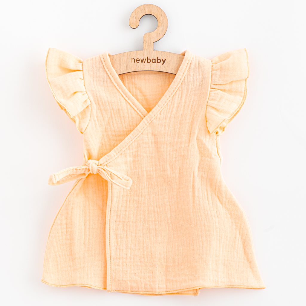 Divatos muszlin kislány ruha New Baby Leny márkától minden kis hercegnőnek. Rövid ujjú, A betűs fazonú ruha, oldalt megkötős, ami megkönnyíti a kislányok öltöztetését. Pihekönnyű anyaga nagyon kényelmes viseletet garantál. Anyagösszetétel: 100% pamut.