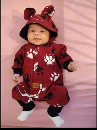 Stílusos és praktikus baba kezeslábas New Baby Paw kisbabáknak. Az overallt gyermekminta díszíti. Kellemes, puha és minőségi anyagból készült, amibe a baba nagyon kényelmesen fogja érezni magát. Teljes hosszában patentos, amely megkönnyíti a baba öltöztetését és pelenkázását. Az overálnak praktikus kapucnija van fülekkel. Szélesebb rugalmas szegéllyel a kezén és a lábán, és a teljes belső rézse pamut béléssel van ellátva, ami növeli a viselési kényelmet. Anyaga: 95% pamut, 5% elasztán, bélés-95% pamut, 5% elasztán. Alkalmas tavasszal és ősszel.