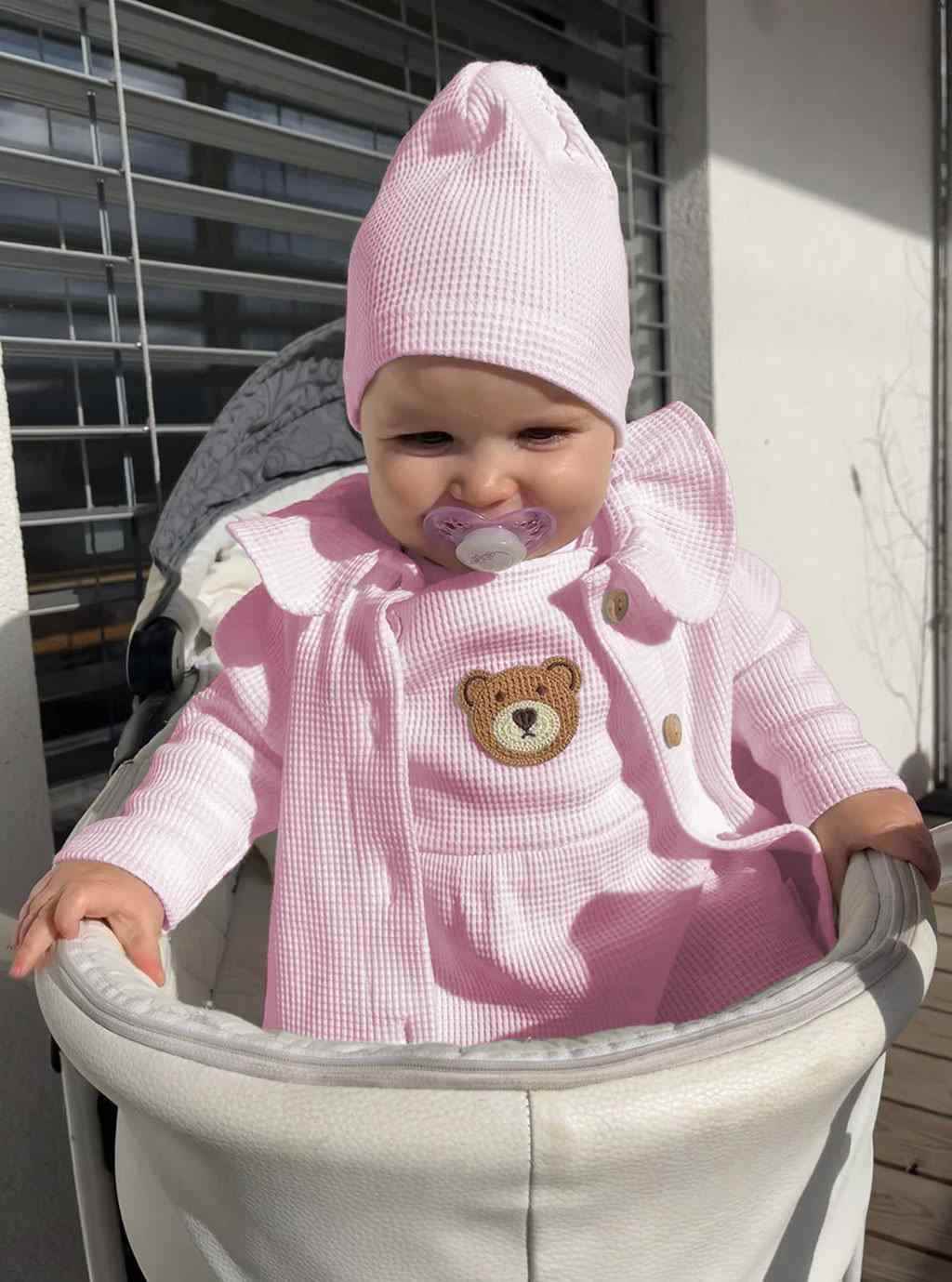 Gyönyörű és praktikus baba sapka New Baby Luxury clothing. Kellemes tapintású anyagból készült, amelyben a baba nagyon kényelmesen fogja érezni magát.