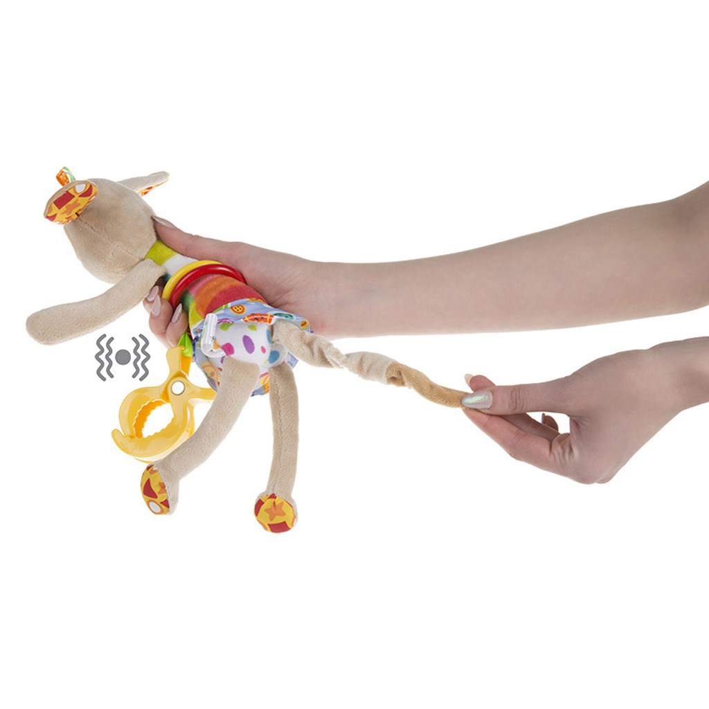 Szép plüss rezgő játék Akuku kisbabák számára. A játék formái és színei vonzzák a gyermek figyelmét, tanítják, szórakoztatják és fejlesztik a gyermek fantáziáját. A színes dizájnnak köszönhetően a gyermek felfedezi a színek, formák és hangok világát. A játék minőségi és kényelmes anyagból készül. 0 hónapos kortól ajánlott, rögtön a születés után. Csipesszel rendelkezik, amellyel felakasztható babakocsira, kiságyra, autósülésre, ahol csak szüksége van rá. Magassága csipesz nélkül kb. 33 cm, csipesszel kb 43 cm.