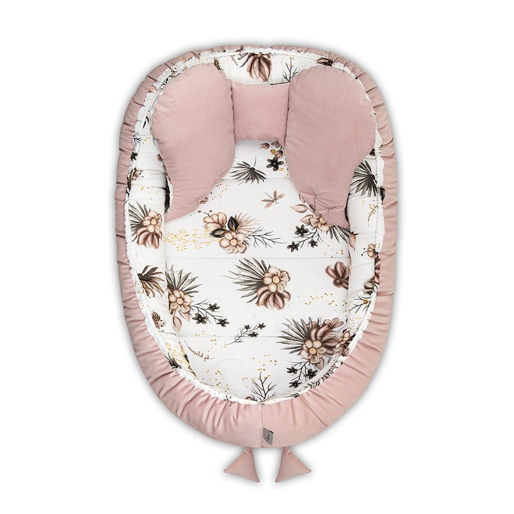 Fészek babák számára Velvet Belisima Night Garden. A baba biztonságosan érzi magát, mint az édesanya hasába. Stabilizáló párnát tartalmaz. A babák könnyebben és nyugottaban alusznak el. Anyaga 100% pamut, alsó része 100% poliészter, töltet: 100% poliészter. Mérete kb 55x75 cm, belső méretek kb 35x59 cm.