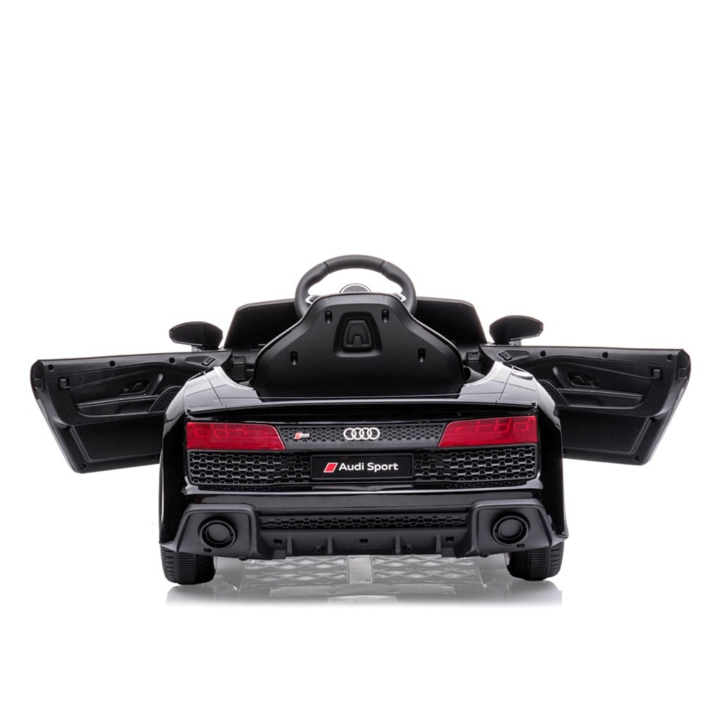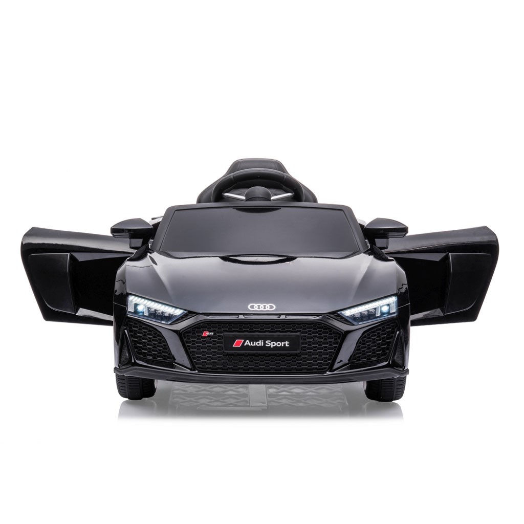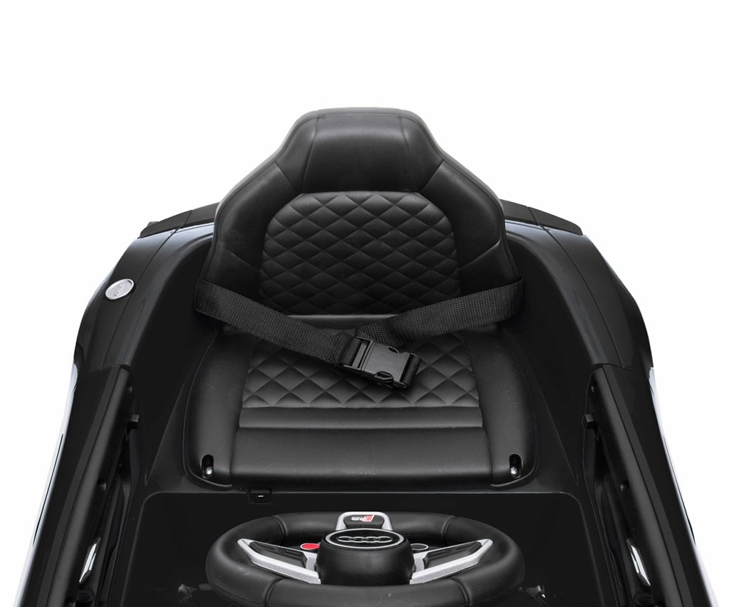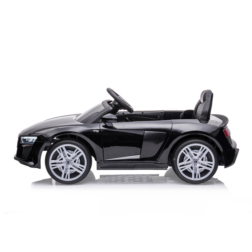 E nagyszerű Audi R8 Spyder gázpedáljának lenyomásával az autó elindul, és ezzel egyidejűleg a két motornak köszönhetően a fényszórók is felgyulladnak. A nagy, széles EVA kerekek futófelülettel és sportos felnikkel biztosítják a mobilitást az otthontól távol eső kirándulások során, míg a kontúros ülés megfelelő kényelmet és biztonságot nyújt a legfiatalabb felhasználók számára. Az acél keréktengelyek biztosítják a jármű stabilitását és tartósságát. A szórakozás sosem ér véget: zenei funkciók a műszerfalon, USB-csatlakozó, Bluetooth, zenelejátszás, hangerő szabályozás +/-, 4 dal a bal oldali kormánygomb megnyomásával, kürthang a kormány jobb oldalán lévő gomb megnyomásával – mindez még érdekesebbé teszi a játékidőt!