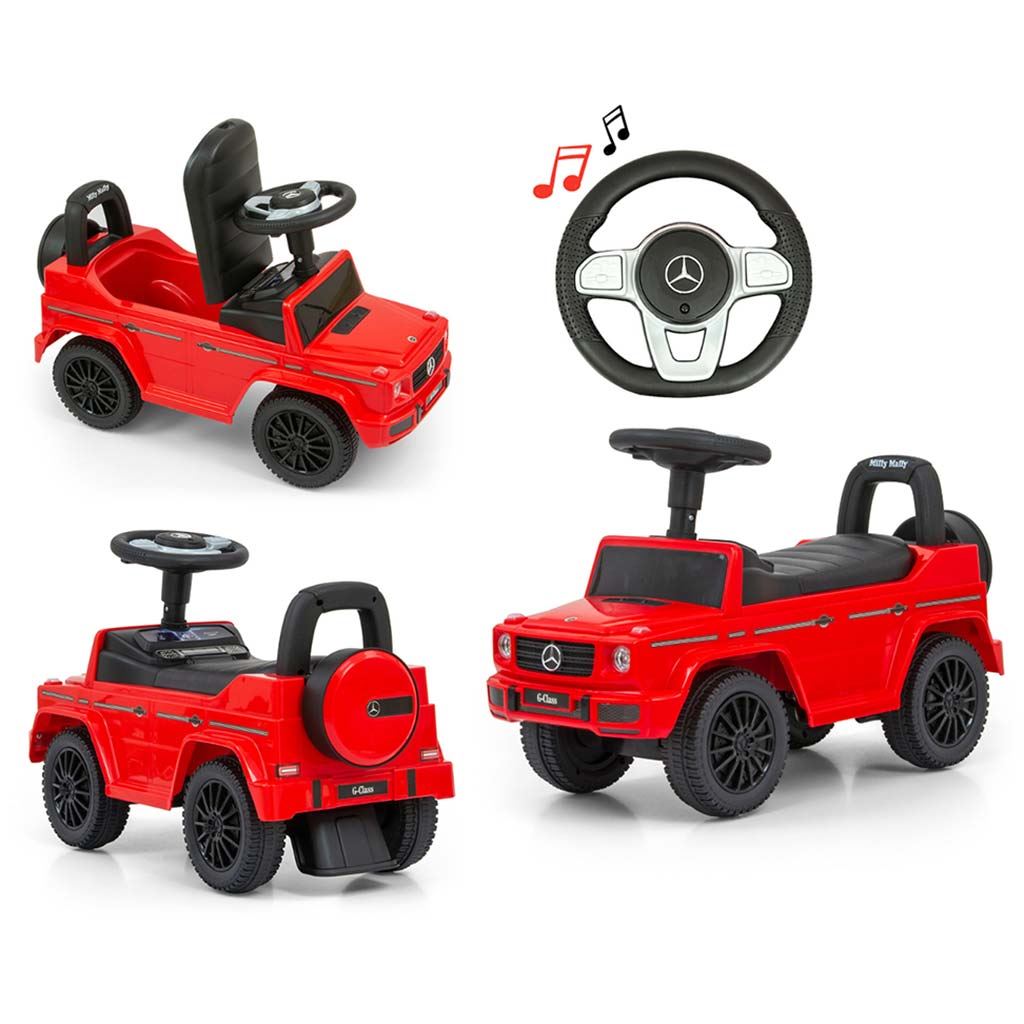 MERCEDES G350d bébitaxi – a MERCEDES csoport engedélyével gyártott termék. Apró autóversenyződ úgy fogja érezni magát benne, akár egy valódi terepjáróban! A bébitaxi a legapróbb részletekre és a felhasznált anyagok minőségére való tekintettel készült. Megjelenése nemcsak a kicsik, de a szülők figyelmét is felkelti. A bébitaxi segít fejleszteni a gyerekek motorikus képességeit, emellett rengeteg szórakozást és mókát hoz a kis versenyzőknek! A járgány háromküllős kormánykerekén különféle dallamokat, motorhangot és kürthangot kiadó gombok találhatók. A bébitaxi forgatható első kerekekkel és kényelmesen széles üléssel, alatta tárolóval rendelkezik. Az elem (2 db AA 1,5 V) nem tartozék.