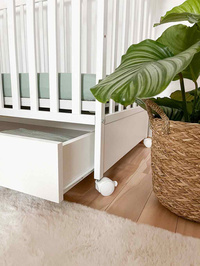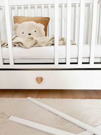 A teljes keret természetes bükkfából készült. A kiságy alján található fiókban bőven van hely a baba ágyneműjének, ruháinak, játékainak, párnáinak vagy kiegészítőinek tárolására.