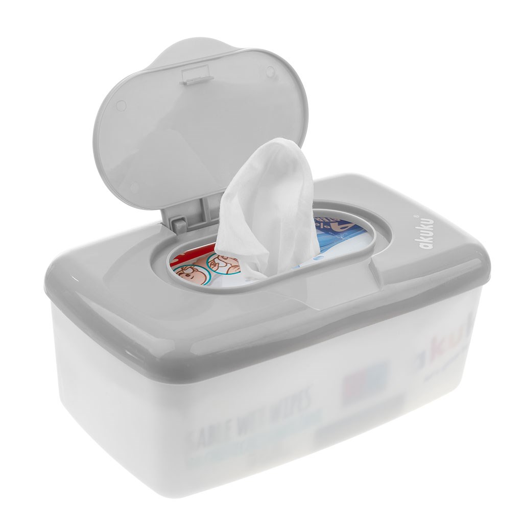A praktikus és funkcionális nedves törlőkendős doboz otthon, utazás és sétálás közben használható. Kis méretének köszönhetően könnyen elfér a táskájában. A tartály megakadályozza a törlőkendők kiszáradását, valamint könnyen használható és könnyű. A nagy gombbal ellátott fedél lehetővé teszi, hogy a tartályt könnyedén, egy kézzel nyissa ki.