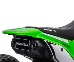 Bekapcsoláskor a motor hangja hallatszik, a gázpedál lenyomásakor pedig a motorkerékpár elindul. A nagyméretű, terepjáró futófelülettel ellátott kerekek biztosítják a stabilitást a szabadban való közlekedés során, a kontúros ülés pedig kényelmet és biztonságot nyújt a legkisebbek számára is. A kerekek acél tengelyei garantálják a jármű stabilitását és tartósságát. Egy dudát is tartalmaz, hogy még szórakoztatóbbá tegye a játékot.