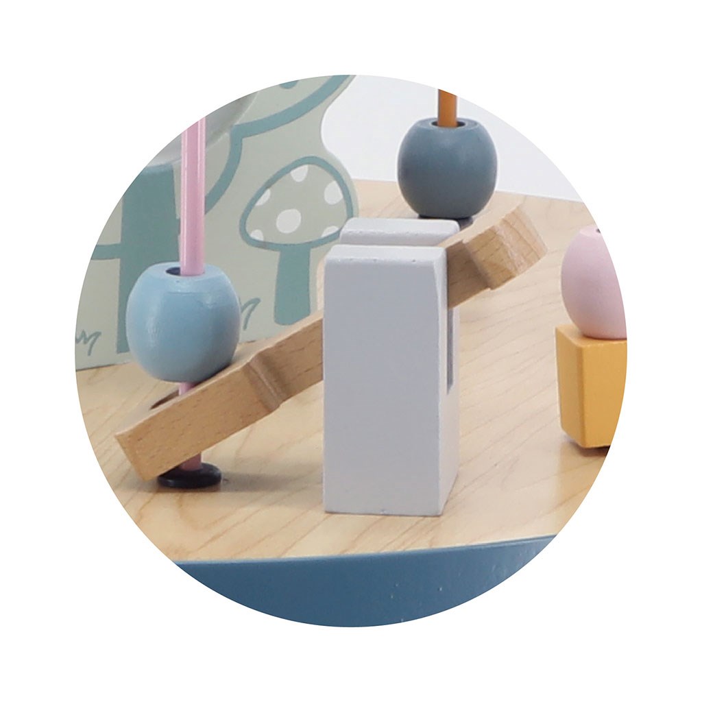 A játék egy asztalból áll, amelyen 4 térbeli fémhurok van elhelyezve gyöngyökkel és állatfigurákkal, egy medve, egy mókus és egy süni mozgatására. Az asztallapon fogaskerekek is találhatók további állatfigurákkal (oroszlán, elefánt és róka) - csak meg kell csavarni őket, és mind mozogni kezd.