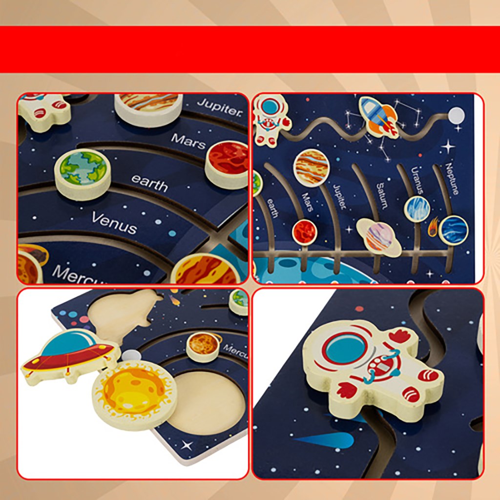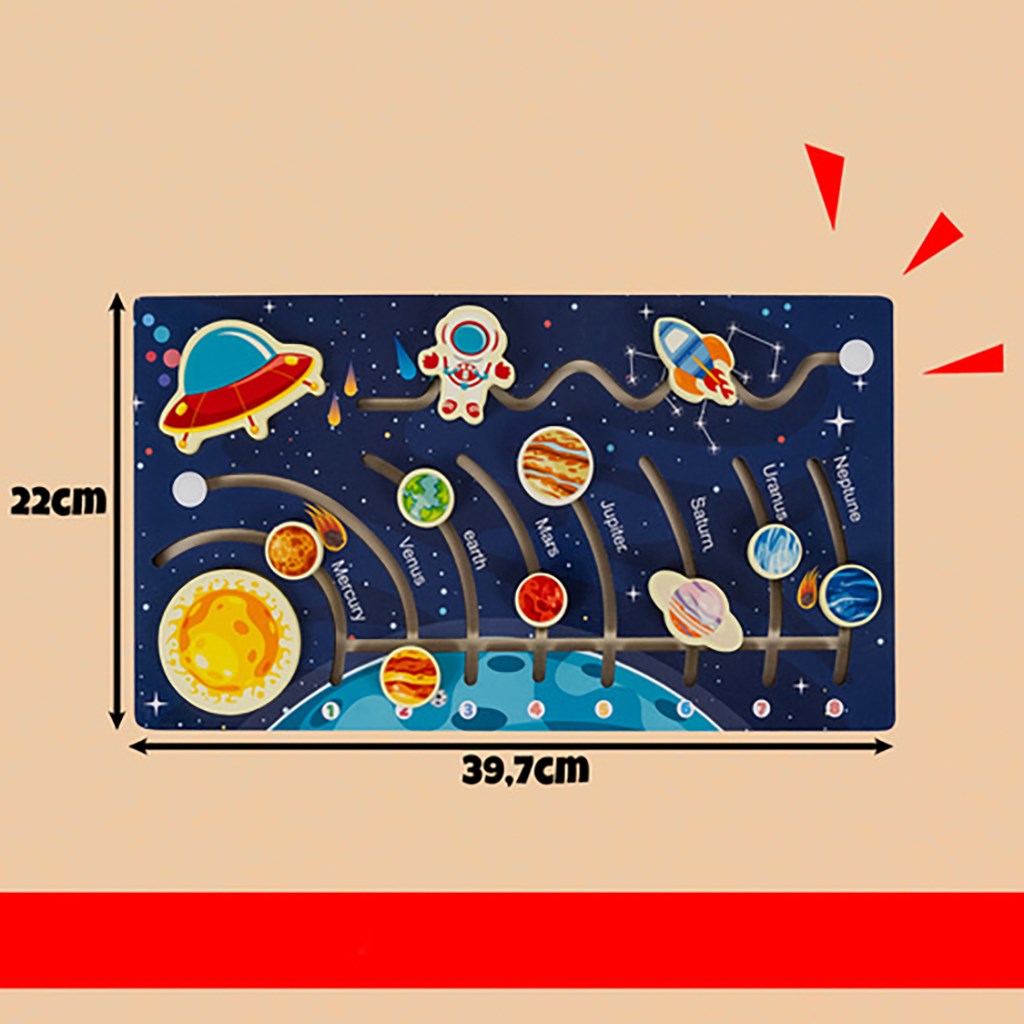 Fa Montessori kirakó – Naprendszer: bolygós és rakétás labirintus – oktató, motorikus és logikai játék gyerekeknek