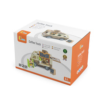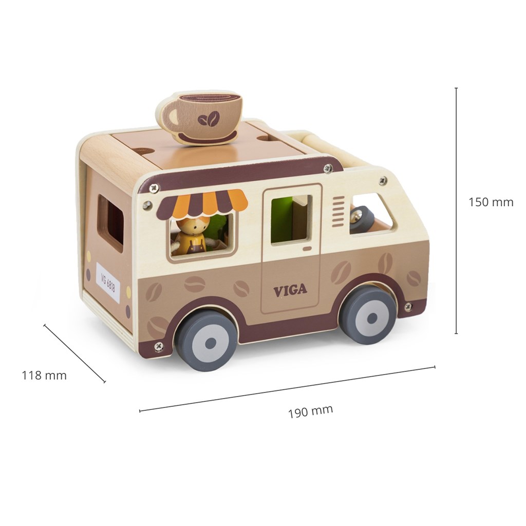 Masszív fa szerkezet és gondosan választott pasztell, nem mérgező festékek alkalmazásával a játék nemcsak esztétikus, de biztonságos is a legkisebbek számára. A szett a gyermekek képzelőerejének, kézügyességének és társas készségeinek fejlesztésére lett tervezve, miközben sok órányi kreatív játékot kínál. Ideális választás azoknak a gyerekeknek, akik szeretik a kalandokat és álmodnak egy saját mobil kávézóról.