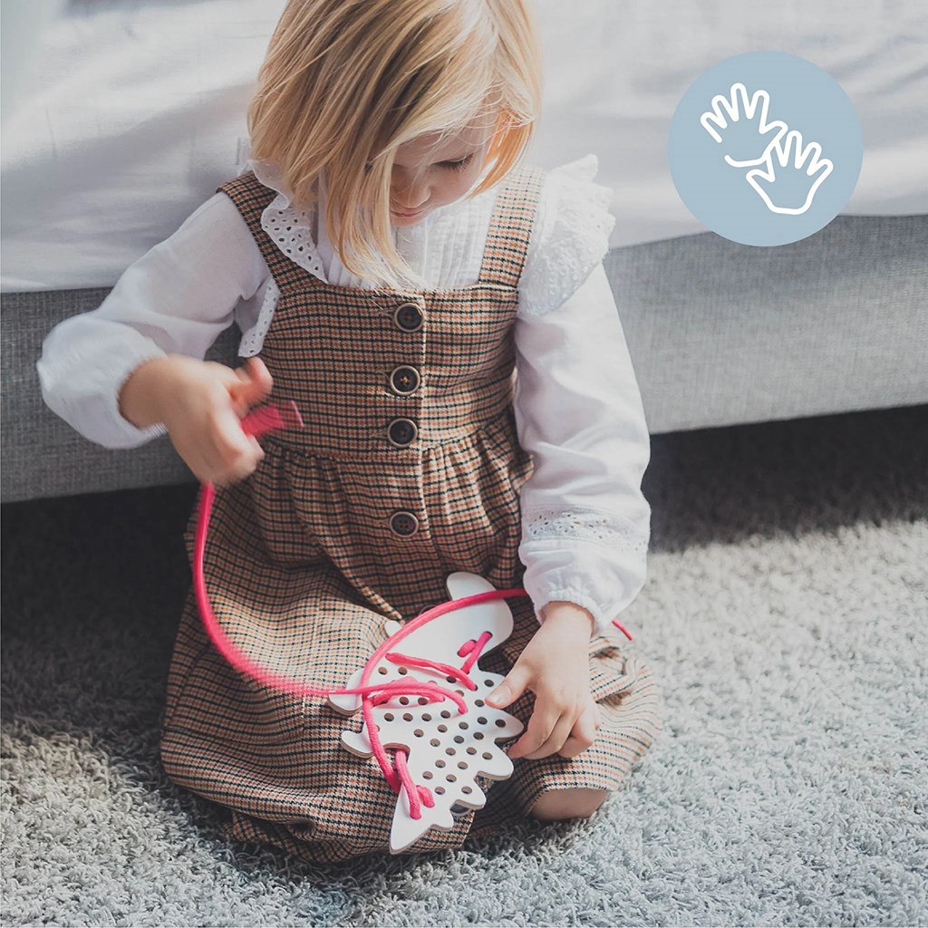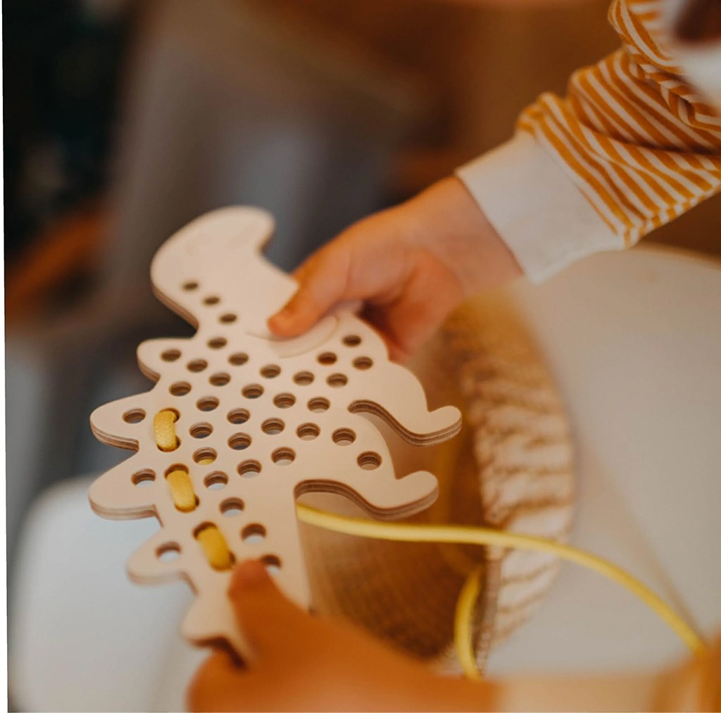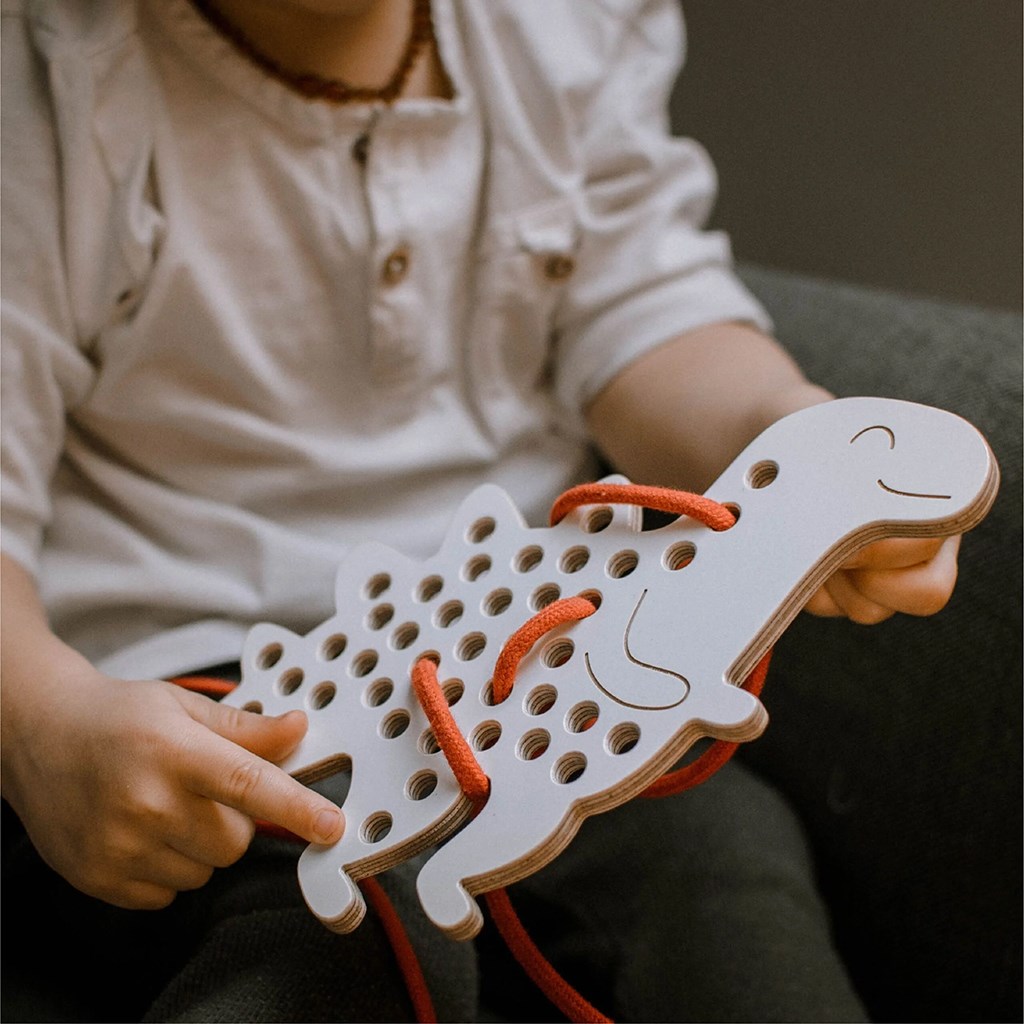 Haladó szintű fűzős játék kis ügyes kezeknek! A készletel dino és zsinór.