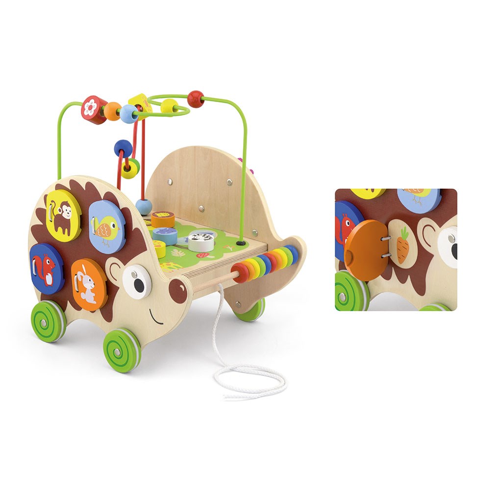 A térbeli labirintus egy aranyos sündisznó formájában egy többfunkciós húzós játék. A sündisznó órákig tartó, szórakoztató attrakciókat nyújt gyermekének. Az első a gyöngyök közvetlenül a sün orránál, amelyek számlálónak is használhatók. A következő attrakció a különböző formájú és színű színes gyöngyök, amelyek szabadon mozgathatók a fémrudakon. A térbeli labirintus alján egy második labirintuspálya található, ahol a kisgyermek feladata, hogy az állatok fejét helyesen illessze a megtalálni kívánt képhez. A süni hátoldalán további attrakciók találhatók: az egyik oldalon a fogaskerekek, amelyek minden gyereknek rengeteg szórakozást nyújtanak; míg a másik oldalon a süni barátai találhatók. A képük alatt az adott állat finomságai találhatók. A sündisznó szívesen indul útnak gyermekeddel - nyaklánccal és csúszásmentes kupakkal ellátott kerekekkel rendelkezik.
