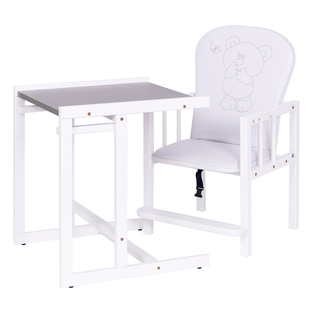 Multifunkcionális szék Drewex Antonín. Minőségi fenyőből kézsült. Macis képpel van díszítve. Etetőszék könnyen szétszerelhető, és használni lehet mind egy önálló asztalt és széket. Eltérő lehet az aktuális ajánlattól függően. Szék magassága 71 cm. Méretek: kb. 102x53x45cm. Méretek: etetőszék: kb. 102x53x45cm. Méretek: szék: az ülés szélessége: kb. 36 cm, az ülés hossza: kb. 28 cm, a háttámla magassága: kb. 45 cm. Jelenleg fehér tálcával kínáljuk.