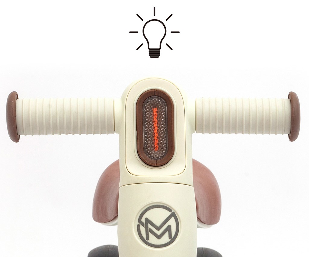 A kormányba épített LED fény (2× AAA/LR03 – nem tartozék) játékos hatást ad, és mozgásra ösztönzi a gyermeket. A futóbicikli beltéri és kültéri, sík felületen történő használatra alkalmas.