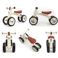 Ez az 1 éves kortól ajánlott futóbicikli a biztonság és a kényelem jegyében készült. A négykerekű változat stabilabb, mint a hagyományos kétkerekű modellek, amit különösen a kezdő kis bringások szülei értékelnek.