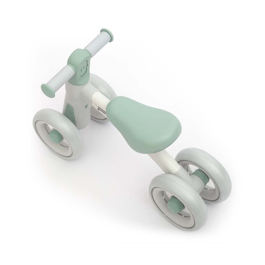 Ez az 1 éves kortól ajánlott futóbicikli a biztonság és a kényelem jegyében készült. A négykerekű változat stabilabb, mint a hagyományos kétkerekű modellek, amit különösen a kezdő kis bringások szülei értékelnek.