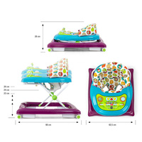 A termékben van egy oktatópanel, amelyen számos meglepetés várja a kis felfedezőket: fények, sípok, dallamok, csörgők, gombok és egyéb mozgó elemek. A tálcáról a panel levétele után a sétálók külön játékként, például útitársként, a tábla pedig játékasztalként szolgál majd.