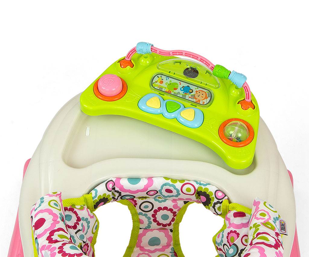A termékben van egy oktatópanel, amelyen számos meglepetés várja a kis felfedezőket: fények, sípok, dallamok, csörgők, gombok és egyéb mozgó elemek. A tálcáról a panel levétele után a sétálók külön játékként, például útitársként, a tábla pedig játékasztalként szolgál majd.