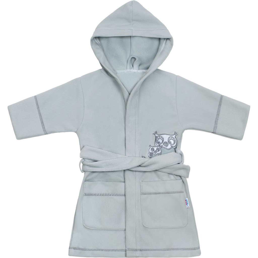 Gyerek fürdőköpeny New Baby Baglyócska. Baglyócska képpel, kapucnival és két zsebbel díszitve. Puha, meleg minőségi anyagból készült. Madzaggal köthető. Mérete: hossza válltól számítva kb 68 cm, mellbősége kb 82 cm, ujj hossz kb 35 cm. Anyaga: 100% poliesztér.