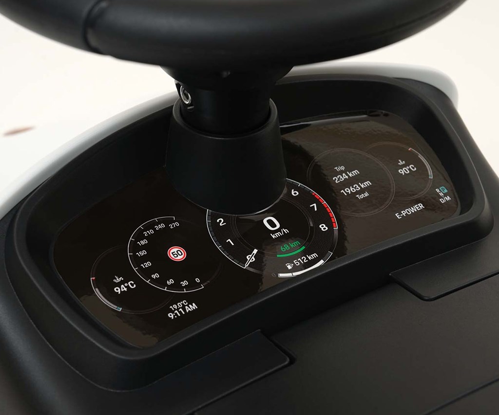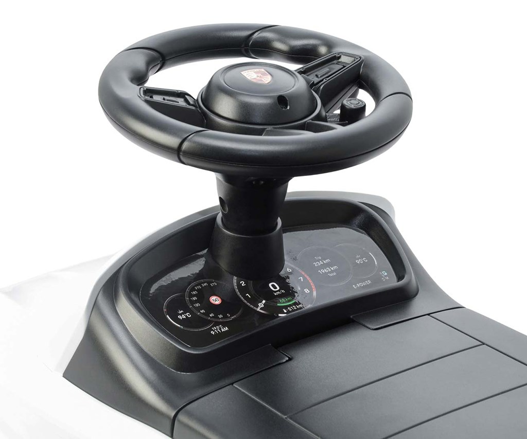 A kidolgozott részletek, az elegáns kivitelezés és az olyan elemek, mint a „műszerfallal” ellátott kormány, lehetővé teszik, hogy a gyermek úgy érezze magát, mint egy igazi autóban.