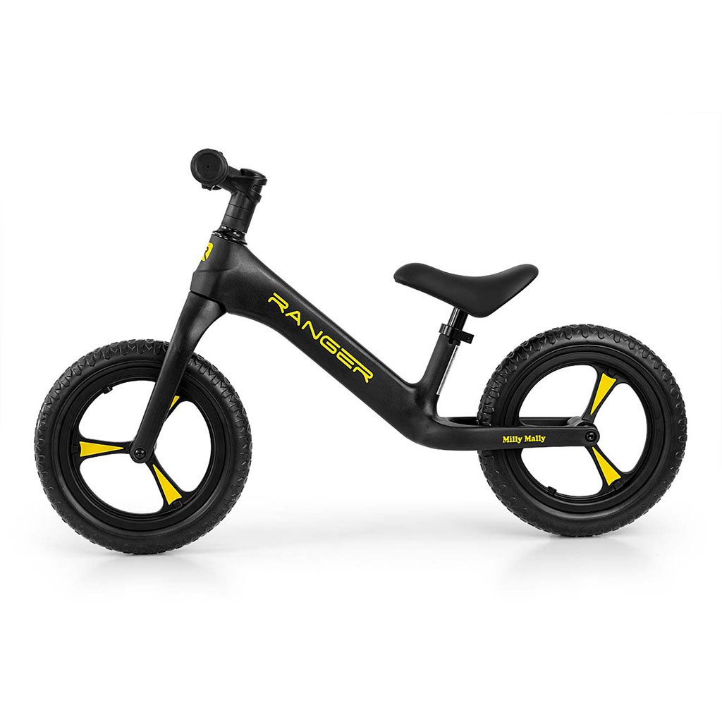 A strapabíró és a legújabb EVA hab technológiával készült, 12"-os defektálló kerekek, amelyeket nem kell felfújni, karbantartást nem igényelnek. Az ergonomikus, állítható magasságú, puha párnázott ülés gondoskodik arról, hogy a gyermek kényelmesen tudjon közlekedni, és együtt nőjön a gyerekkel A Ranger kerékpárnak golyóscsapágyas kormánya, valamint golyóscsapágyas kerekei vannak A csúszásmentes puha gumi fogantyúk biztos fogást és kényelmes vezetést biztosítanak.