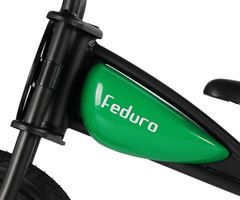 A kormány túlfordulásgátlóval van ellátva a fokozott biztonság érdekében, a csapágyazott kerekek pedig zökkenőmentes gurulást biztosítanak. A csúszásmentes fogantyúk védővégekkel óvják a kis kezeket. A kényelmes, formázott ülés gondoskodik a komfortos biciklizésről. A FEDURO kiválóan alkalmas az egyensúly fejlesztésére a pedálos bicikli előtt.
